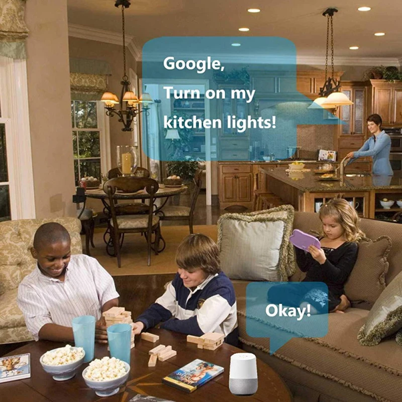 【Поддержка голосовой динамик управления】Лампа Wi-Fi совместима с Alexa и Google Home Assistant, что позволяет использовать Голосовое управление смарт-лампы для включения/выключения и изменения цвета/яркости.