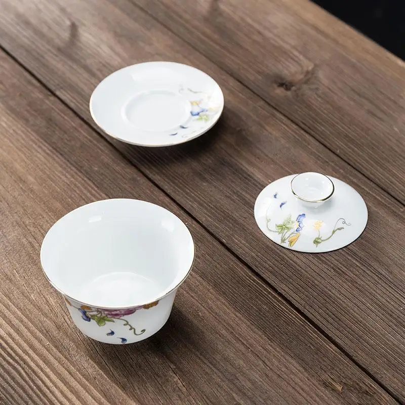 Чайная чашка из белого фарфора расписанные вручную чайные наборы кунг-фу чайные наборы китайский керамический гайвань наборы портативная чайная чаша для путешествий керамическая чайная чаша