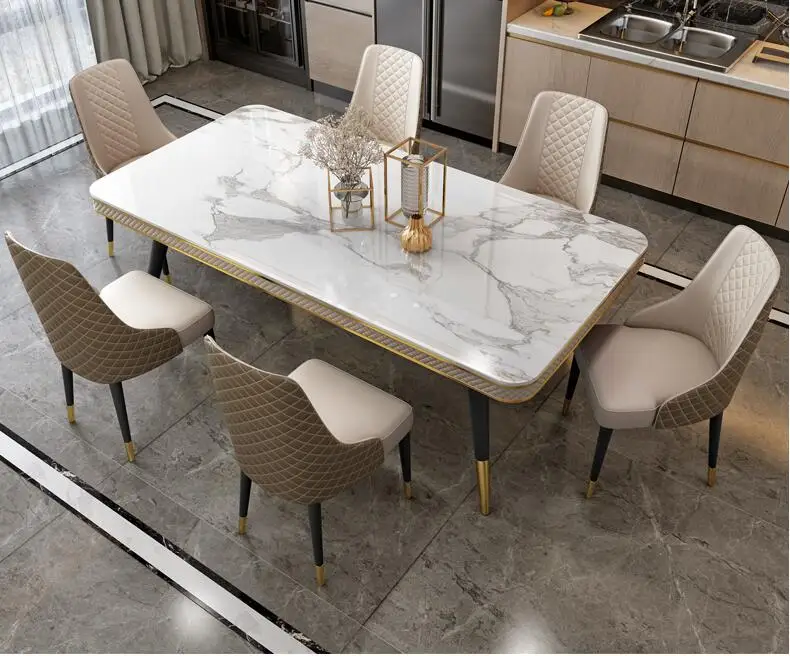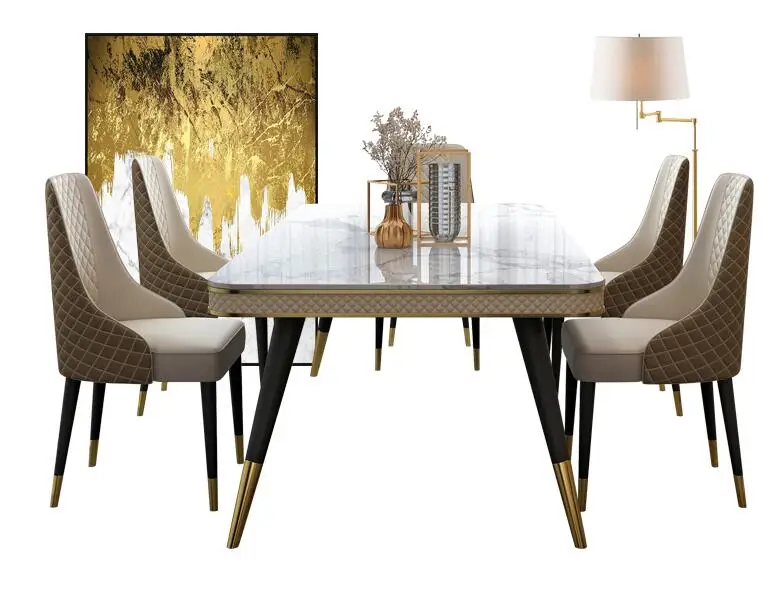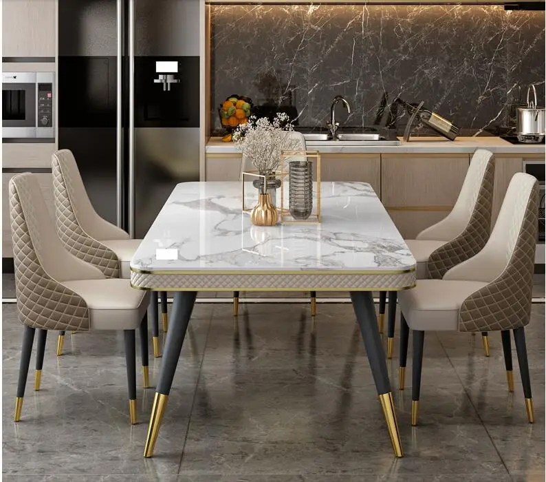 Отзывы о Marble countertop dining table and chair combination rectangular light luxury | Мебель