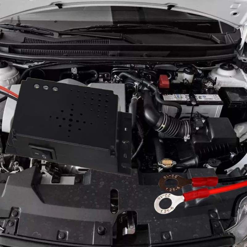 Откройте крышку моторного отсека автомобиля, зафиксируйте изделие в правильном положении внутри кабины, затем подключите конец красной линии с предохранителем к положительному полюсу автомобильного аккумулятора, а черный провод-к отрицательному полюсу.