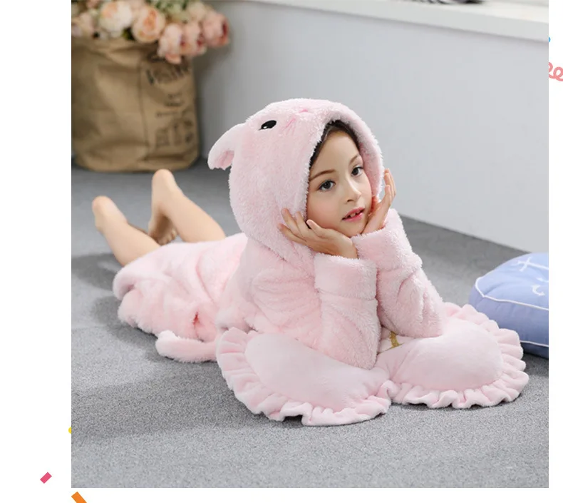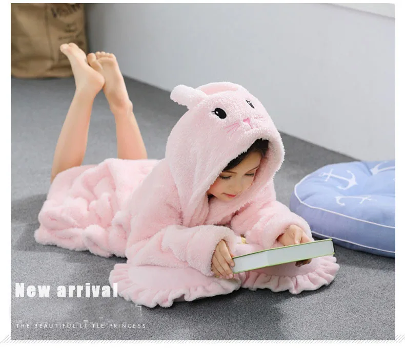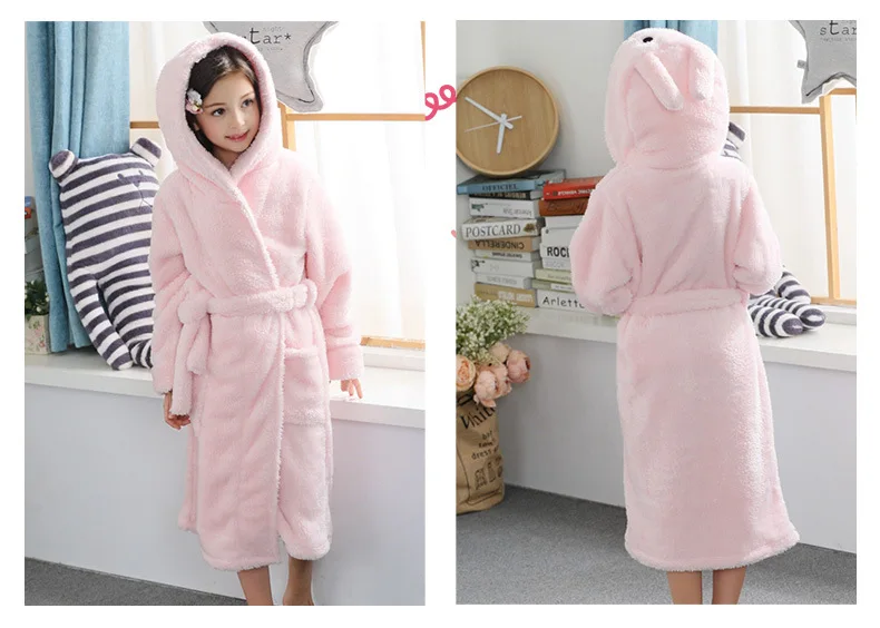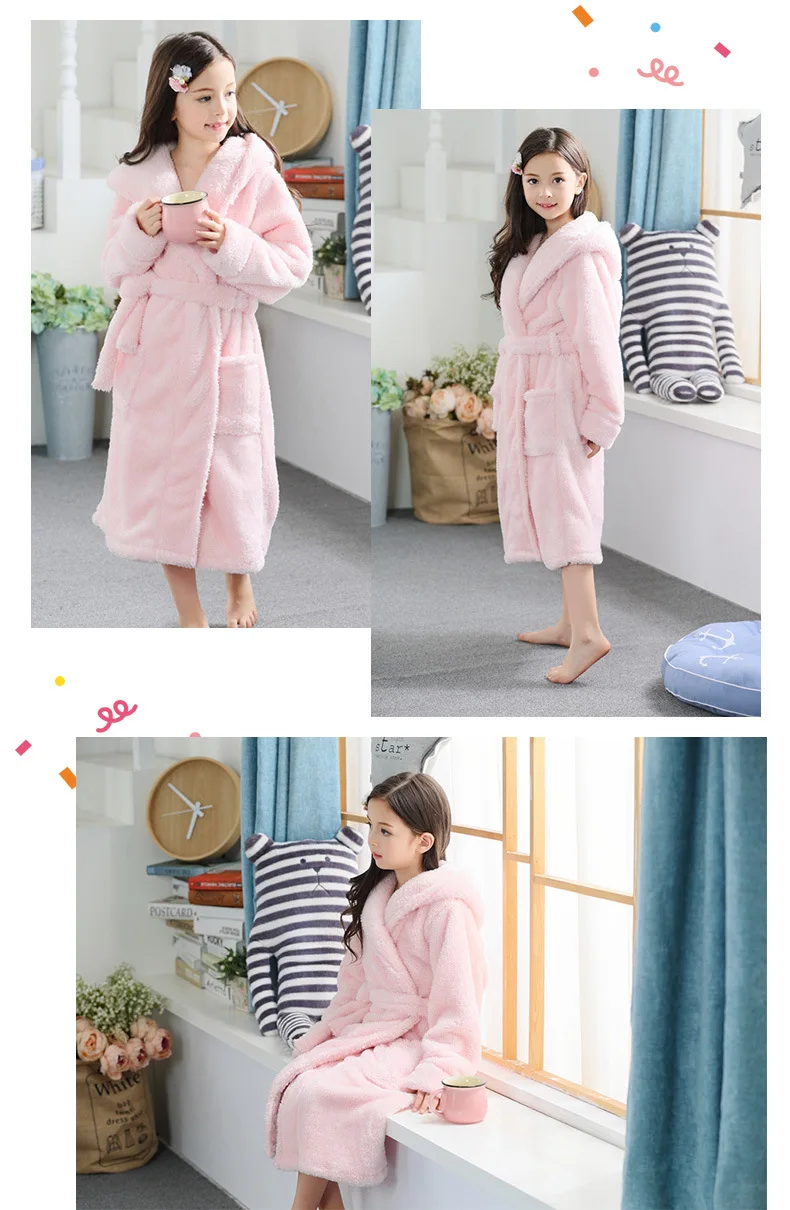 Банный халат для девочек, От 2 до 13 лет фланелевый махровый банный халат с капюшоном, розовый банный халат с капюшоном для детей, для русской зимы