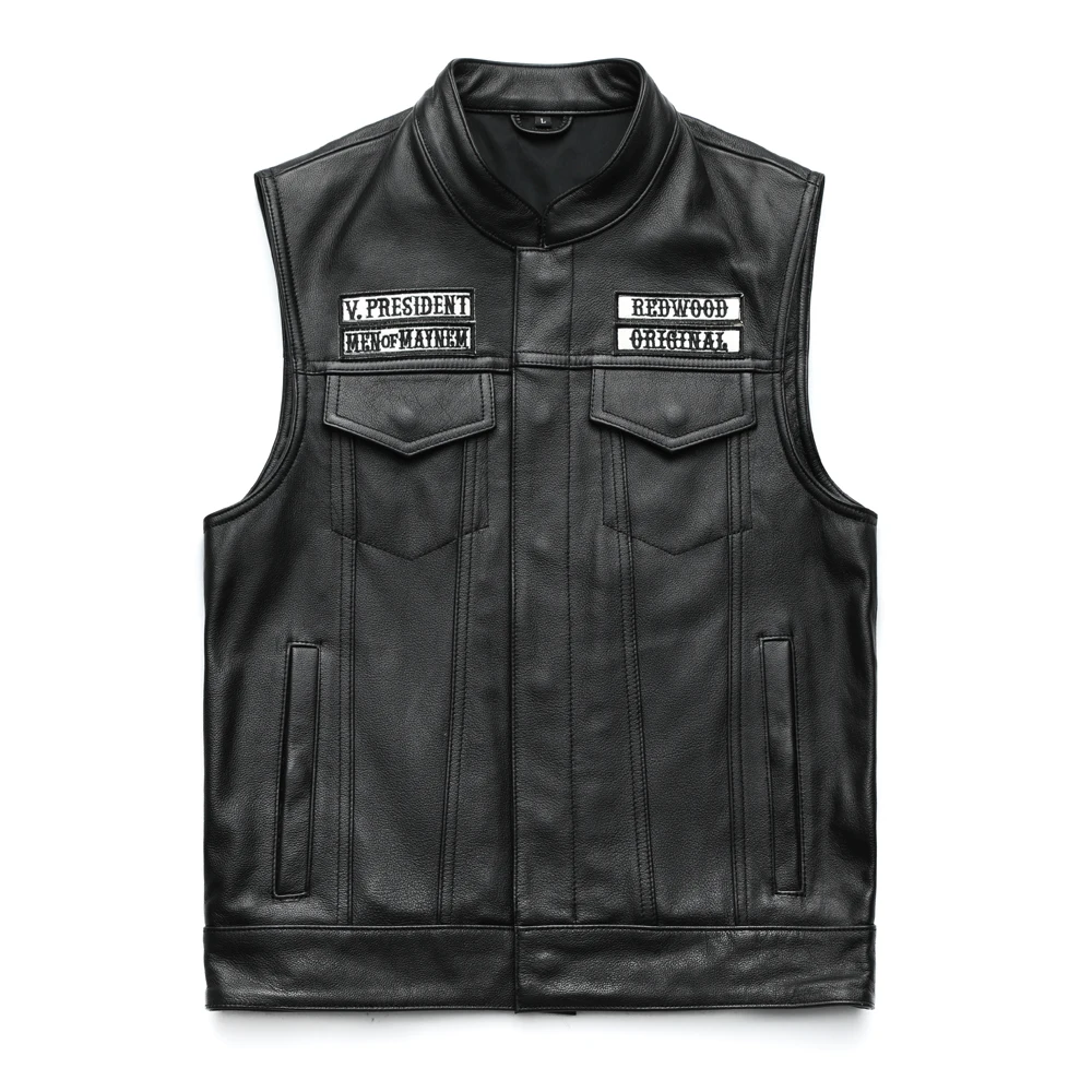 Отзывы о Классический мотоциклетный кожаный жилет мужской Байкерский из 100% натуральной