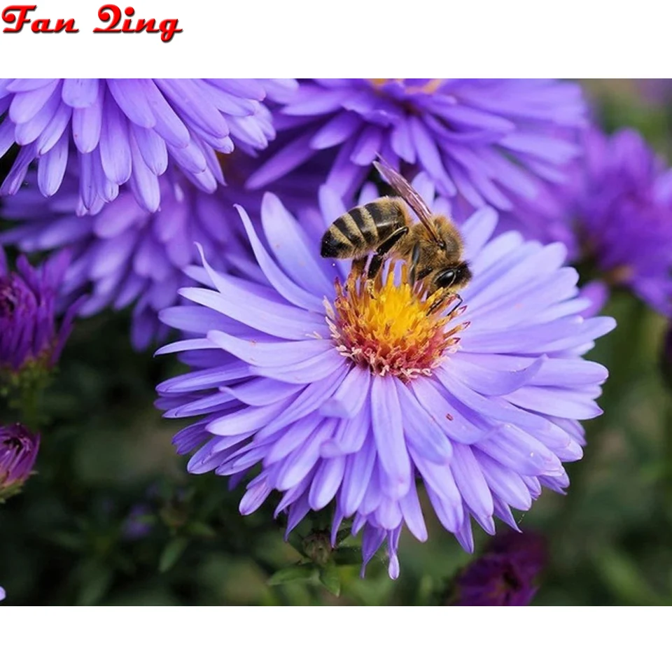Отзывы о 5D Алмазная вышивка с камнями-ринестонами и крестиком "Цветок пчела" 3D Вышивка на.