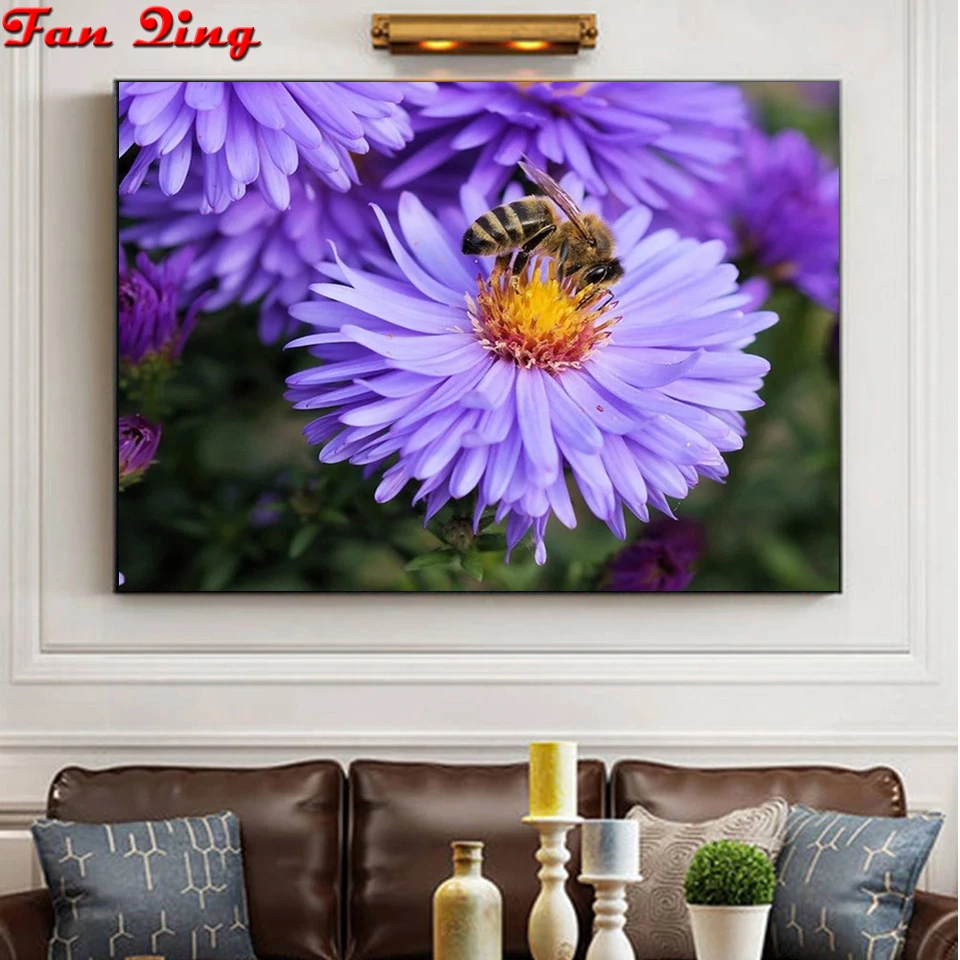 5D Алмазный Узор страз рукоделие Diy Алмазная Картина Вышивка крестом "цветок пчела" 3D Алмазная вышивка