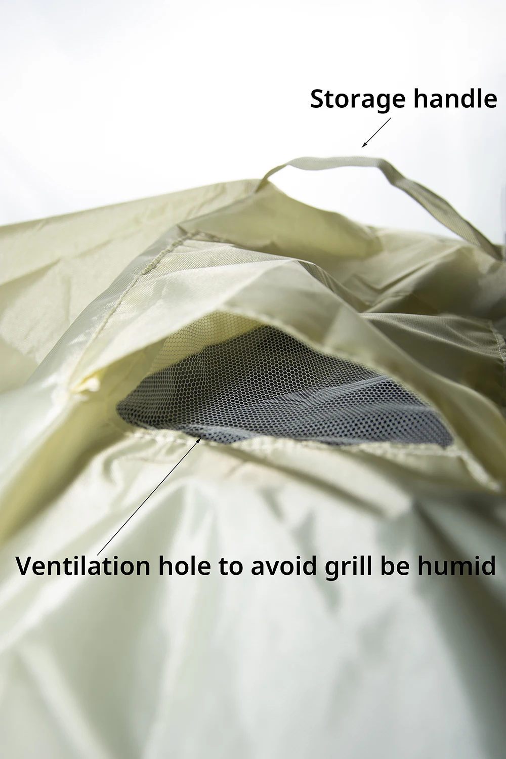 4. Под ручкой есть дышащий карман. Когда мы используем платье на открытом воздухе в течение длительного времени, некоторые затхлый запах будет расти внутри барбекю гриль. Дизайн этого дышащего кармана легко устранит затхлый запах, а дышащий карман имеет кнопку вниз. Может эффективно противостоять дождевой атаке.