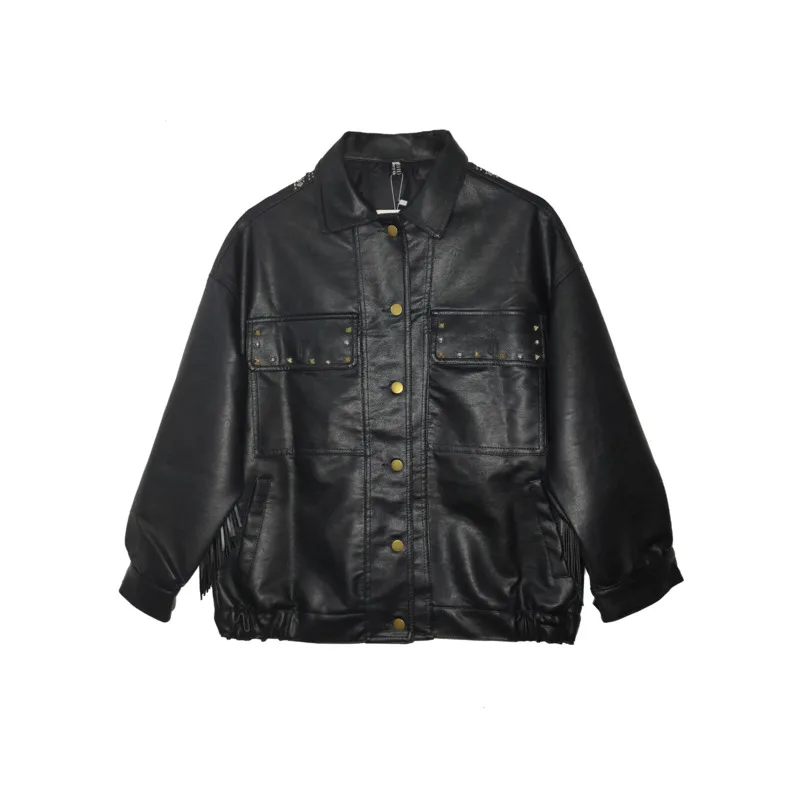 Отзывы о Куртка женская из искусственной кожи с бахромой и заклепками короткая