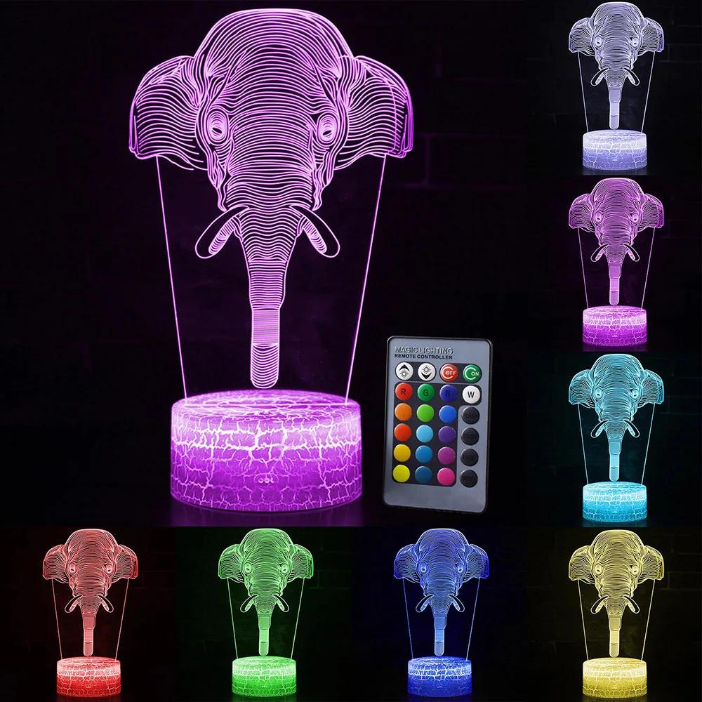 Отзывы о Сенсорная светодиодная лампа 3d светильник серия Elephant 7/16 видов цветов настольная