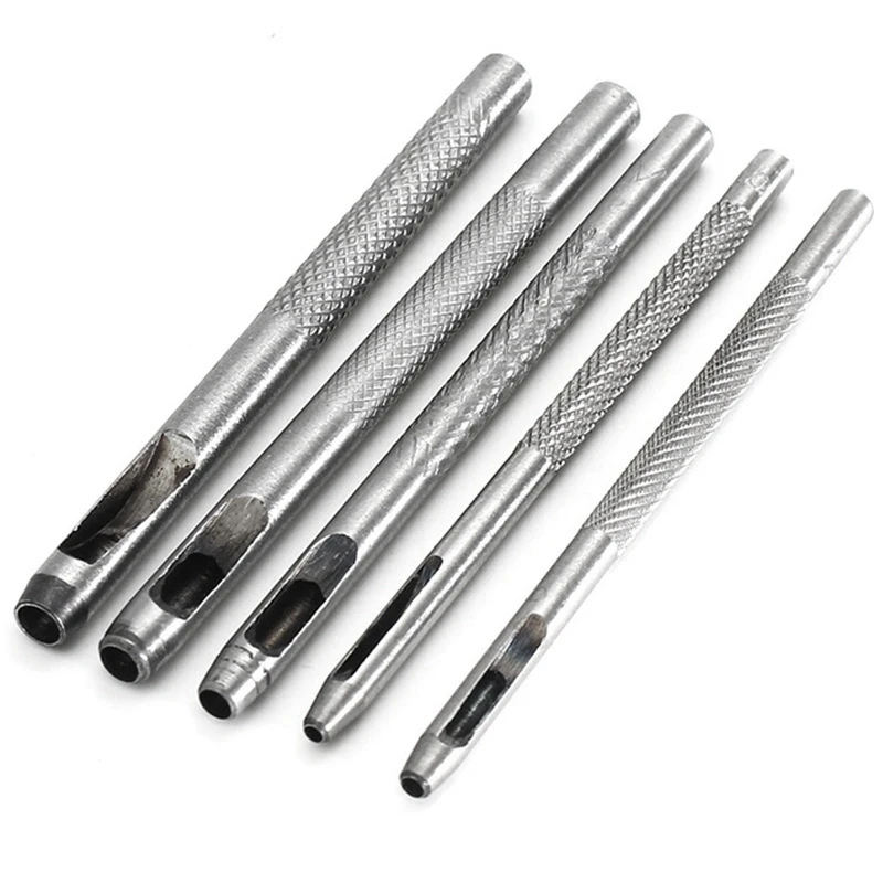 Набор круглых пустотелых Дырокол прост в использовании, размещая прокладку Дырокол над областью, которая нуждается в отверстии и ударяет задним концом молотком или молотком, создавая отличительные художественные и эстетические эффекты для кожи с различными узорами перфораторов.