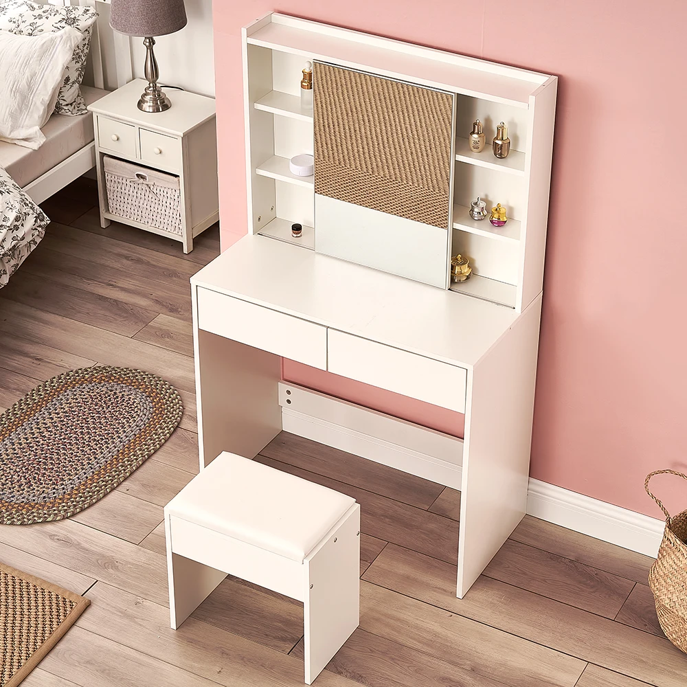 Каждая девушка хочет иметь очаровательный туалетный столик со всеми своими украшениями и косметикой. Пусть этот комод воплотит в жизнь вашу мечту принцессы! Это потрясающий туалетный столик с круглыми зеркалами и мягкими стульями. Стол с двумя ящиками идеально подходит для хранения всех ваших украшений, маленьких младенцев и косметики. Гладкая поверхность обеспечивает пространство для косметики и косметических средств. Табурет с мягким сиденьем входит в набор туалетного столика, а его Высококачественная поролоновая Подушка делает табурет элегантным украшением для вашей спальни.