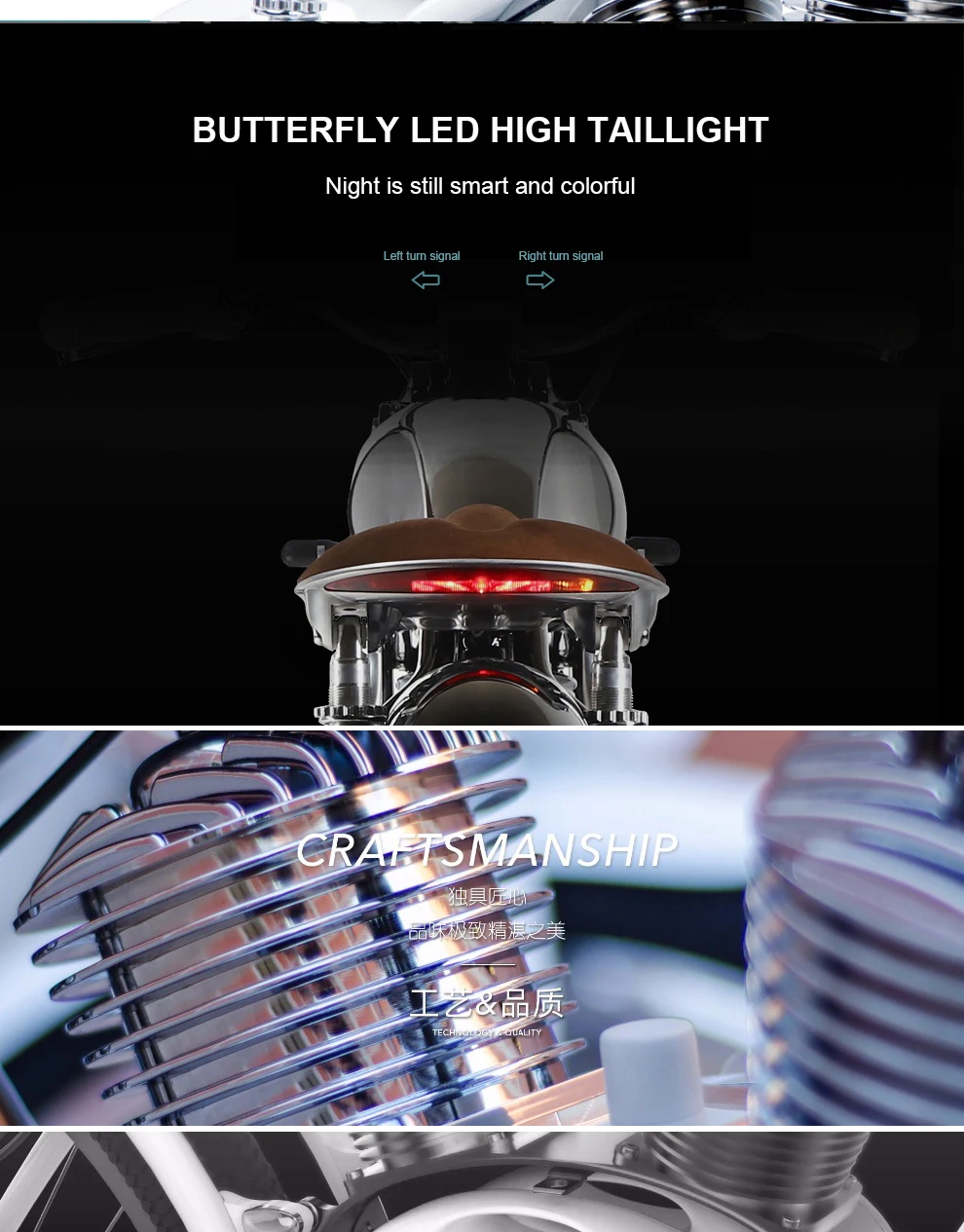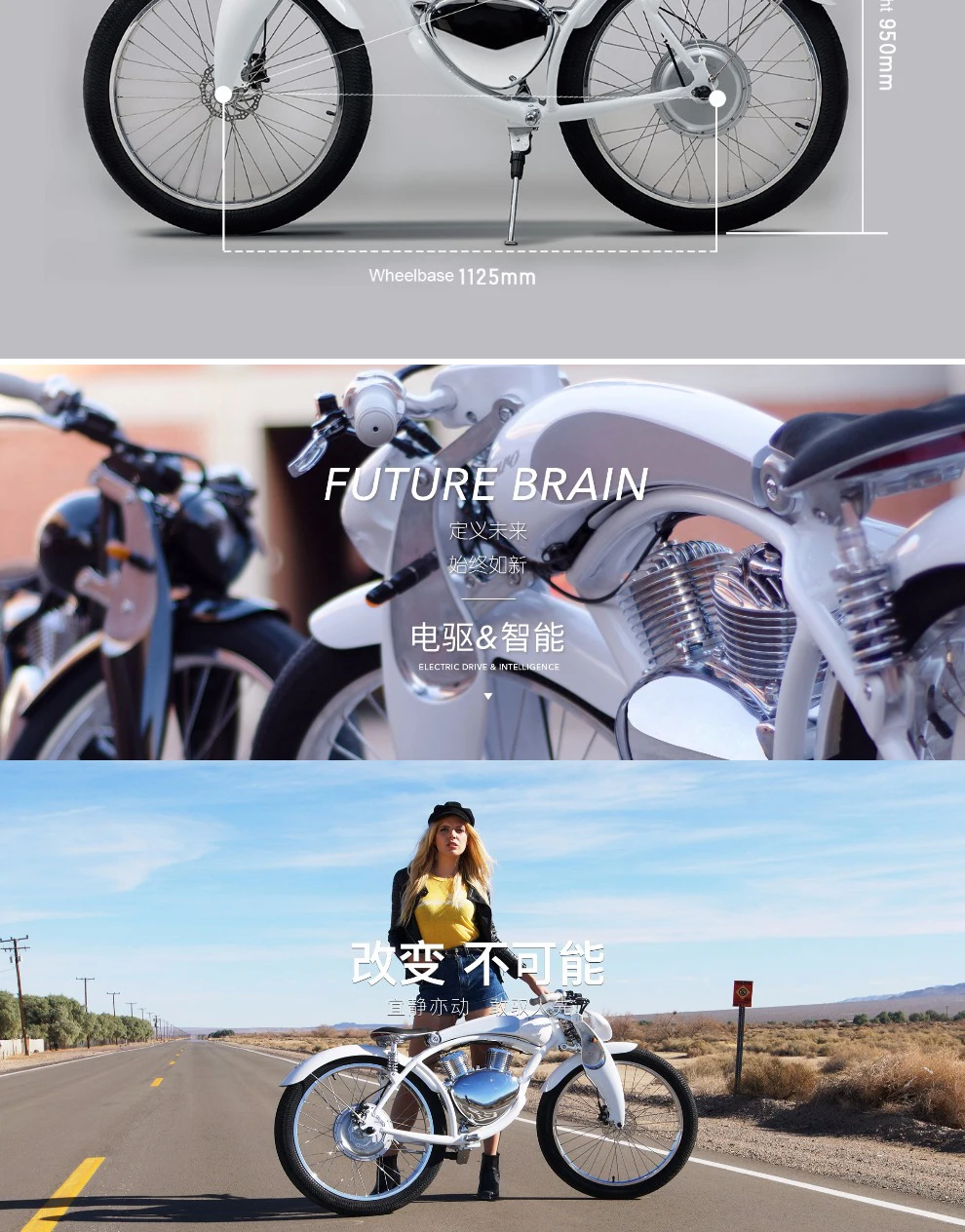 Ретро Электрический велосипед-это электрический мопед с дизайном, который вызывает классические мотоциклы, такие как индийский Бурт Мунро.