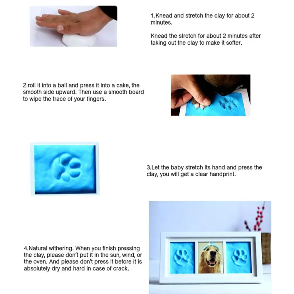 4 、 идеальный память: Размер рамки составляет около 33*17,5*2 см/12,99*6,89 * 0.79in, таким образом, вы можете поставить вашу любимую фотографию в рамку устанавливаются элементы, оставьте отпечатки лап глины для ваших питомцев, что поможет нам подумать о величии жизни.