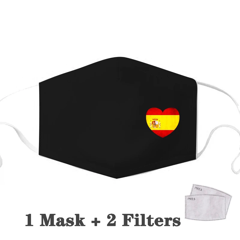 Spain Flag черная взрослая 2 шт PM2.5 фильтр маски для лица многоразовая маска для рта моющаяся маска для рта