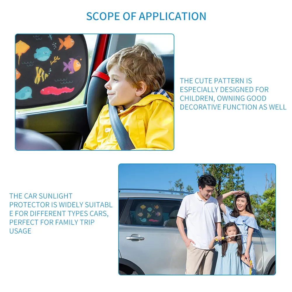 Защита от солнечного света для автомобиля широко подходит для различных типов автомобилей, идеально подходит для семейного использования. Милый узор специально разработан для детей, имеет хорошую декоративную функцию.