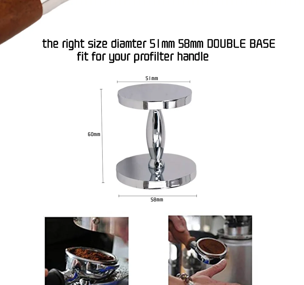 Двойные концы этого ТАМПЕРА равномерно распределяют, компресс и ровный молотый кофе для более плотного, богаче и более ароматного эспрессо.