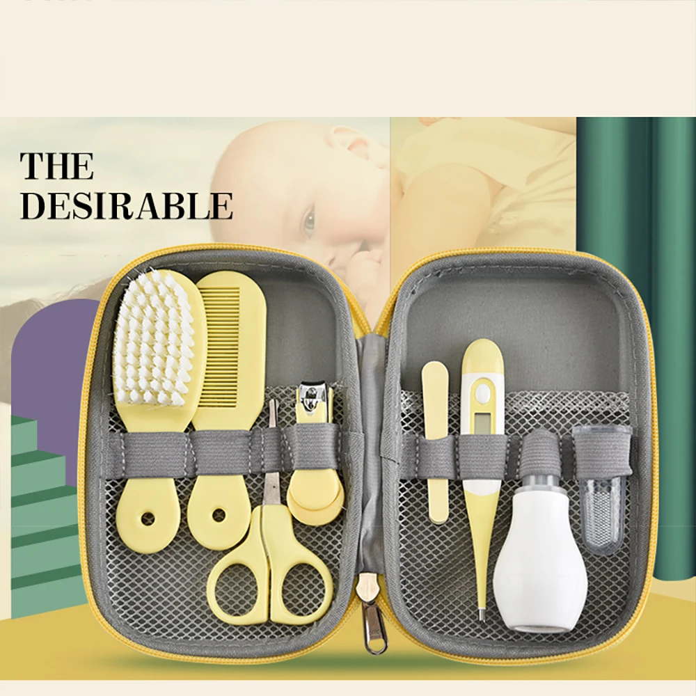 Детский Медицинский Набор предлагает каждый необходимый и Практичный предмет, который вам нужен для вашего малыша. В комплект входит Детская щетка для волос, расческа для волос, машинка для стрижки ногтей, ножницы, очиститель носа, термометр, пилка для ногтей и зубная щетка для пальцев.