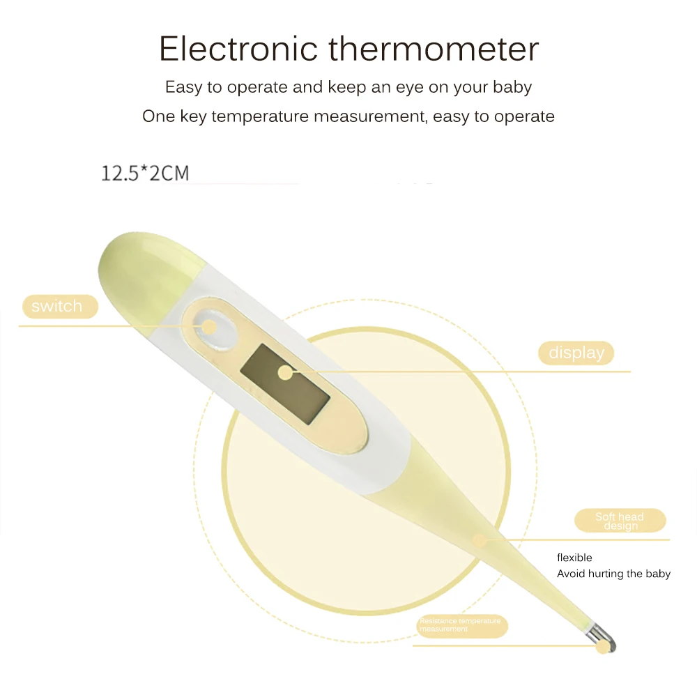 Он специально разработан для ухода за ребенком, который уделяет большое внимание деталям, ножницами с круглыми наконечниками, гибким электронным термометром, мягким носовым аспиратором и безопасными ножницами для ногтей для детей. Таким образом, вам не придется беспокоиться о любой опасности для безопасности.