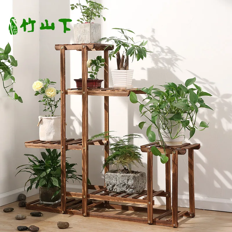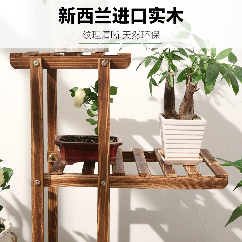 Балкон из цельного дерева для гостиной Антикоррозийная деревянная сетчатая Цветочная подставка многослойная комнатная растительная Цветочная горшка стойка для цветов