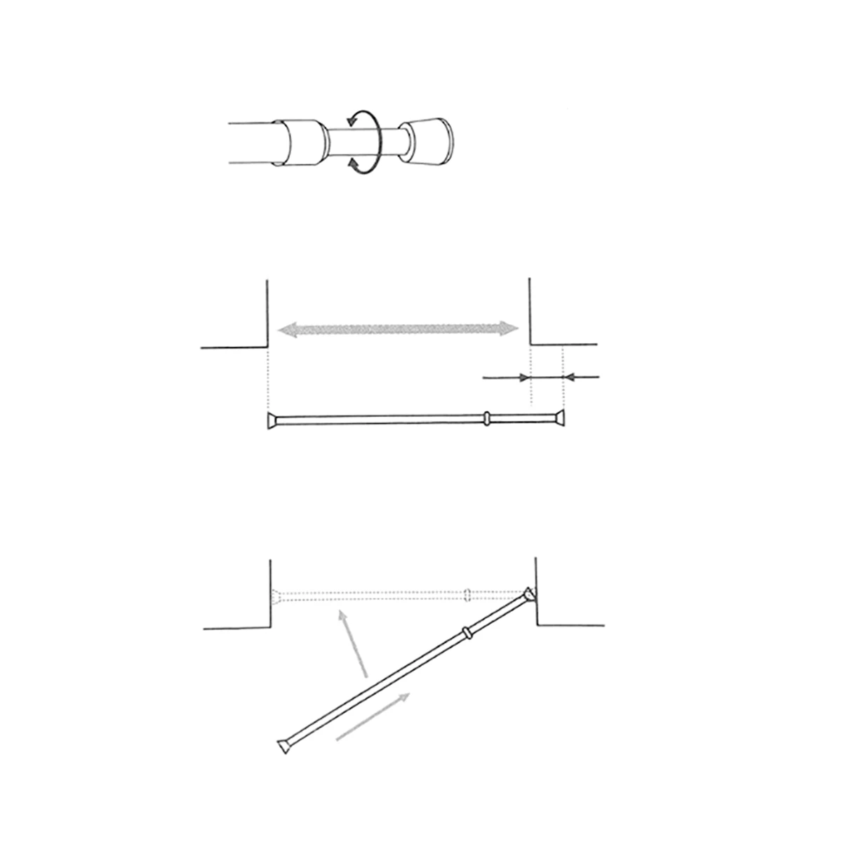 - Этот Натяжной стержень для штор не требует сверления, не беспокойтесь о царапинах или повреждении поверхности установки.
