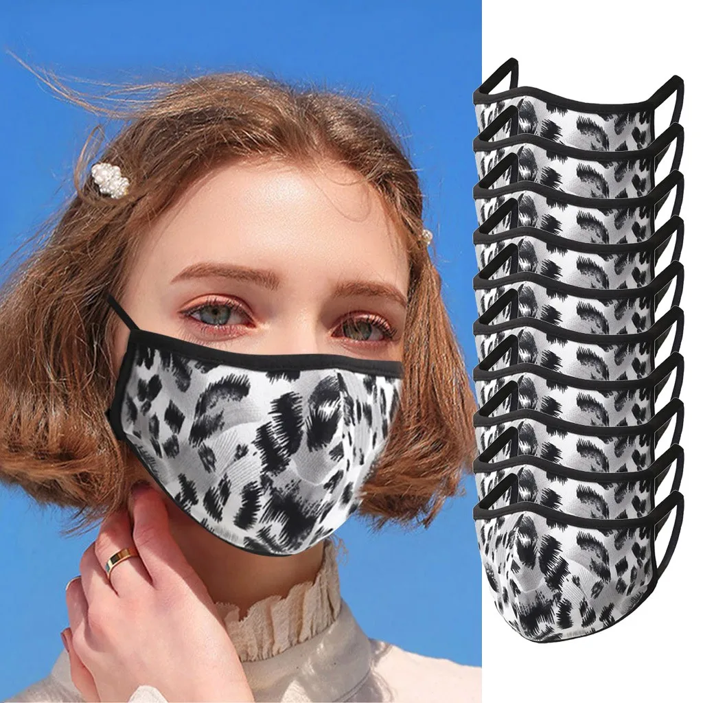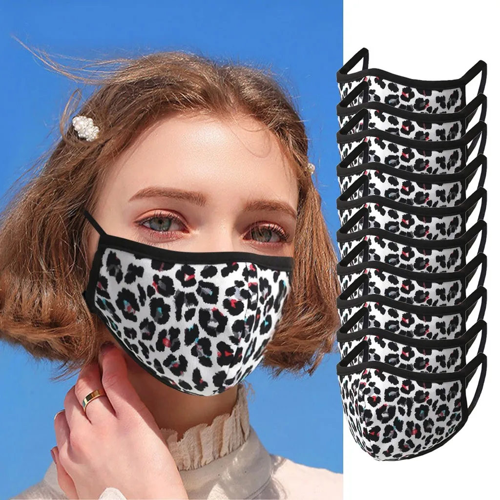 Отзывы о 10PCS Leopard Print Camouflage Womens Fashionable Cycling Face Mask Washable Reusable Cloth Cotton-lined Inside Fashion Masque | Спорт и