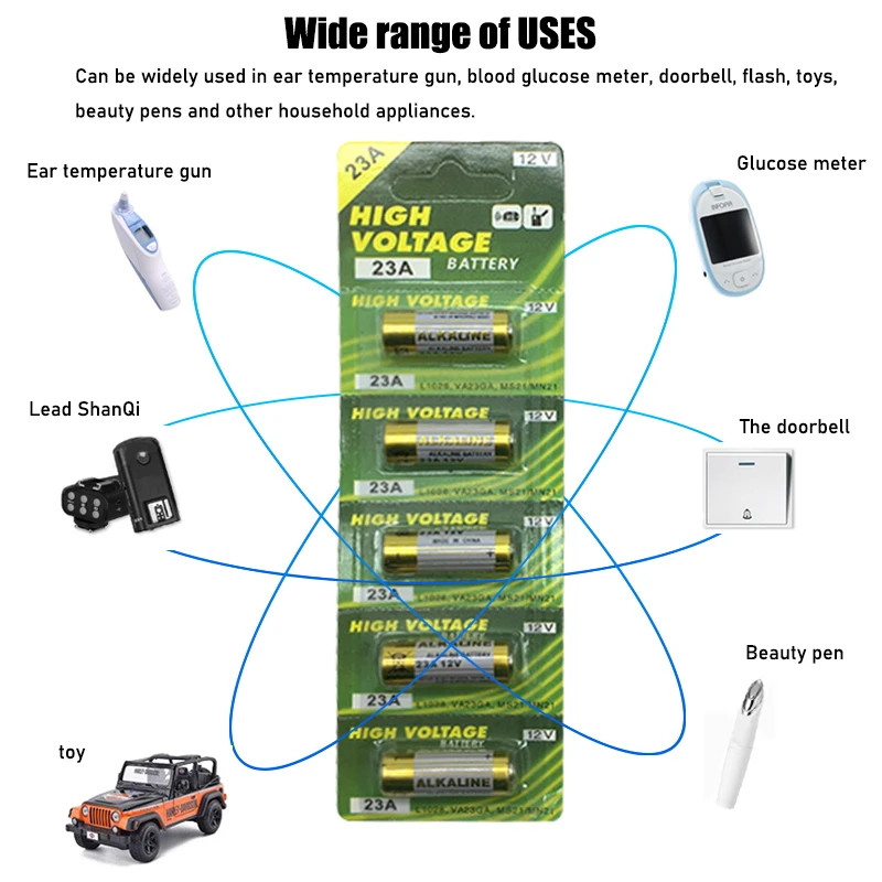 12 В 23А щелочные клетки, 12 В 27А щелочные клетки и 6 в 4LR44 щелочные элементы являются неперезаряжаемыми батареями, используются высокотехнологичные приборы и хорошо подобранные материалы для производства, которые могут быть применимы для широкого диапазона температуры и отличного сопротивления утечки.