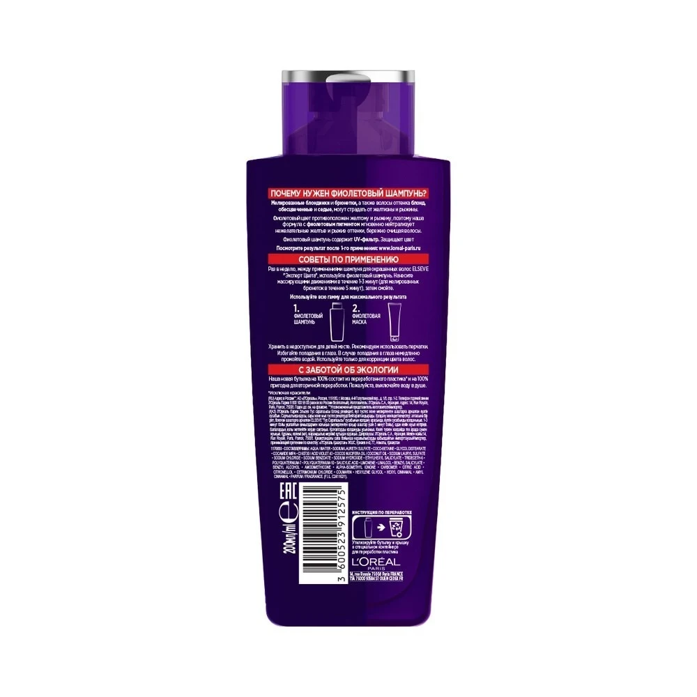 Шампунь ELSEVE Эксперт цвета Фиолетовый против желтизны для волос оттенка блонд и мелированных брюнеток 200мл