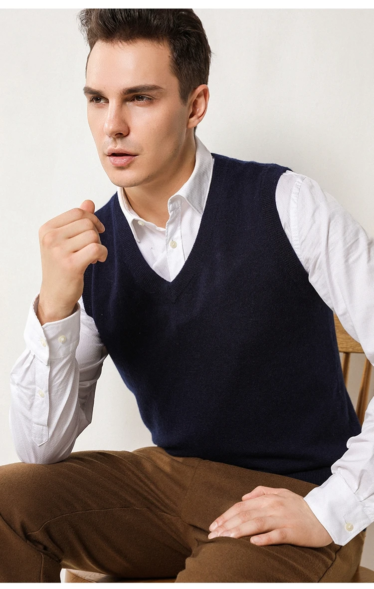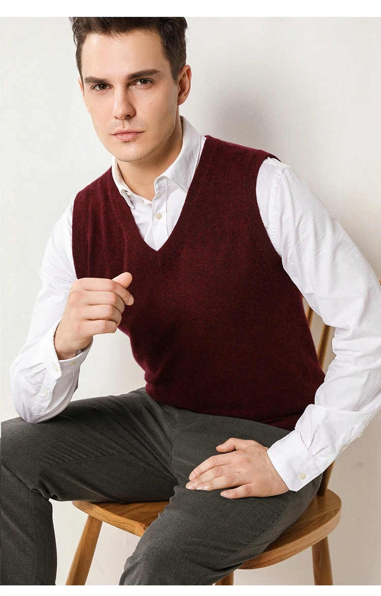 Отзывы о Мужской жилет из 2020 чистого кашемира свободный силуэт с V-образным вырезом
