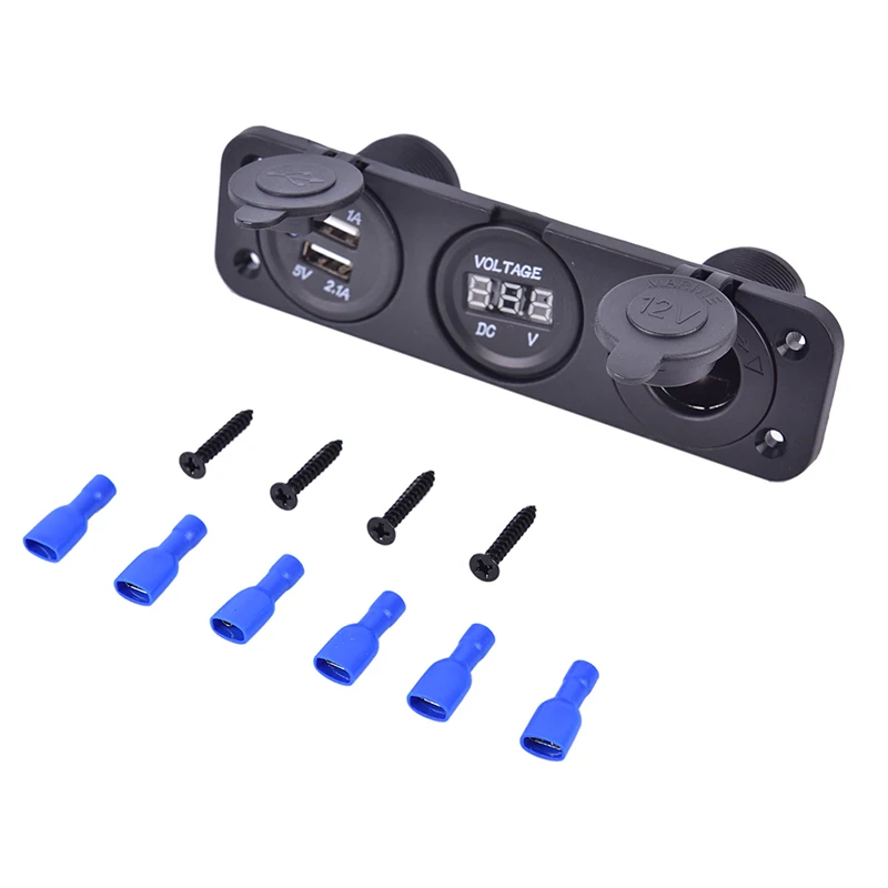 Панель в сборе с вольтметром, зарядным устройством USB и гнездом 12 В.