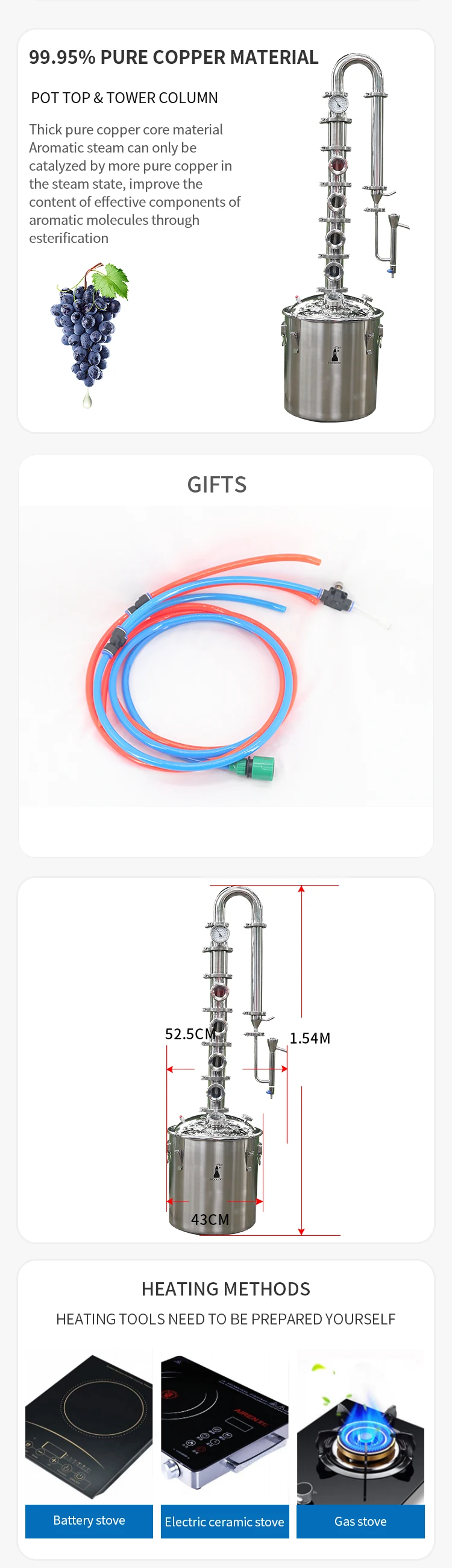 Отзывы о Дистиллятор HOOLOO 50L для домашнего пивоварения медная дистилляционная колонна из