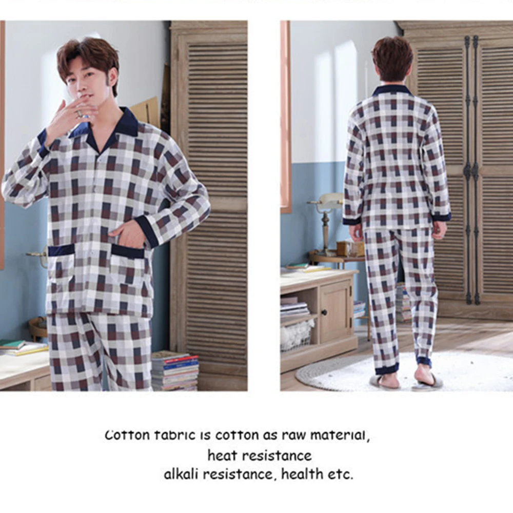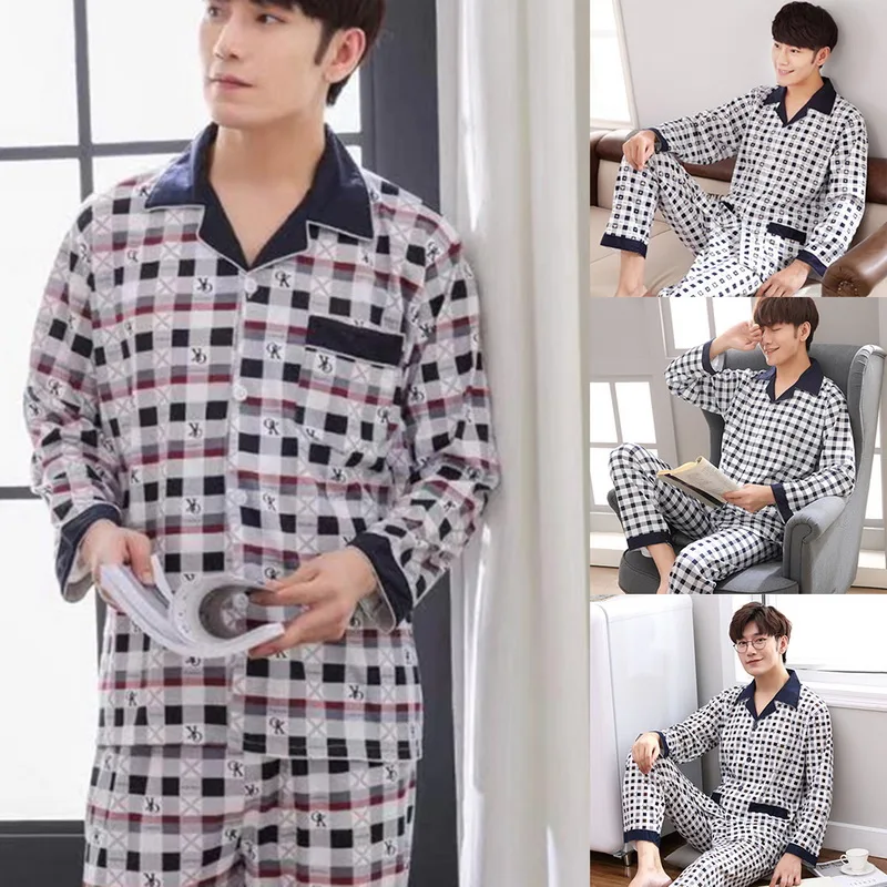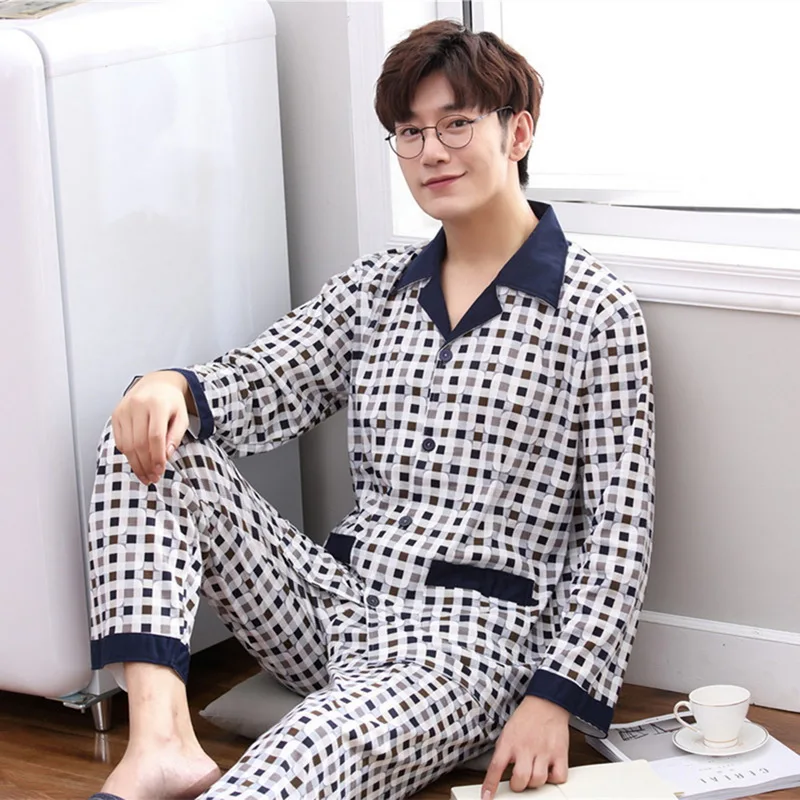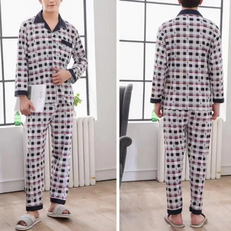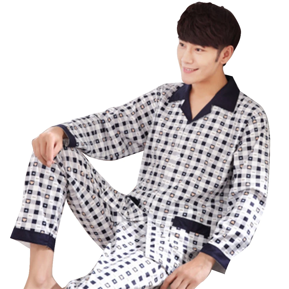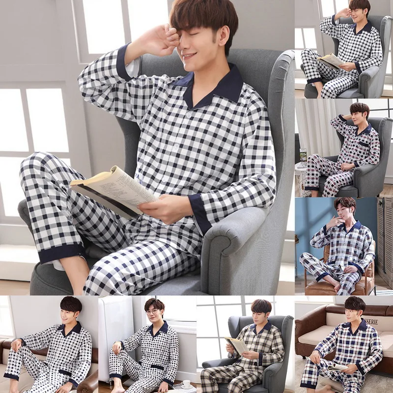 Отзывы о Мужской пижамный комплект Хлопковая весенняя пижама в клетку с длинным рукавом