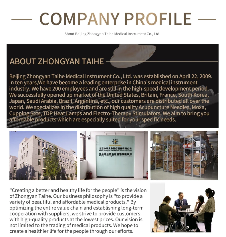 Продукт: Одноразовая Стерильная Акупунктура Zhongyan Taihe Технические характеристики: 200 шт./кор. Метод стерилизации: эпоксиэтан и гамма-луч Внимание: 1, хранение: Избегайте влажности и высокой температуры 2. Не используйте, если внутренняя посылка повреждена 3. Используется врачом 4. Стерильные иглы являются одноразовыми продуктами. Не используйте их повторно. Спецификация Материал: игла из нержавеющей стали Функция улучшения тела Упаковка 200 шт./кор., 10 шт. в одной маленькой сумкой Размер 0,16*7 мм, 0,16*25 мм, 0,18*10 мм, 0,18*13 мм и т. Д. Сертификация CE, FDA, ISO13485 Быстрая доставка Ручка из стали Применение китайская медицинская акупунктура