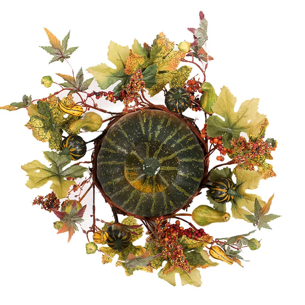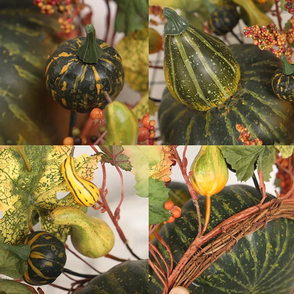 Отзывы о 2020 Halloween Double Pumpkin Maple Leaf Wreath Home Decoration Ornaments Imitation Green pumpkin Plants Desktop Decor H5 | Дом и сад
