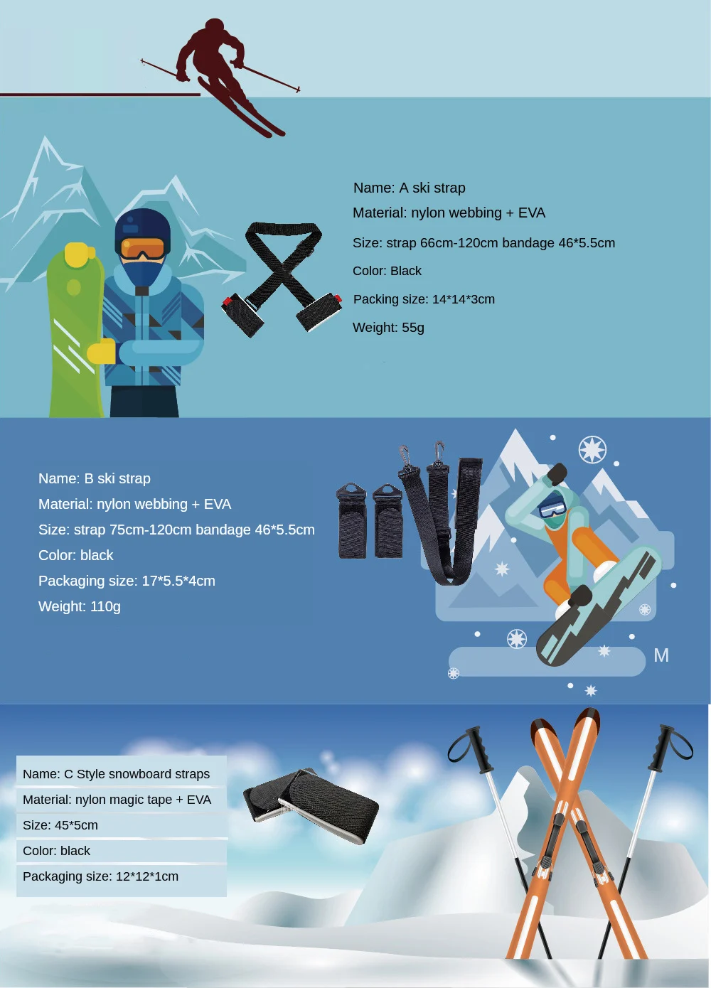 100% новый товар высокого качества. Регулируемый ремешок с пряжкой, вы можете отрегулировать длину по вашему желанию. Простой в использовании и супер прочный. Защищает руки и другие части тела, когда вы занимаетесь спортом. Очень удобные, вы можете носить лыжную доску в руке или на плече