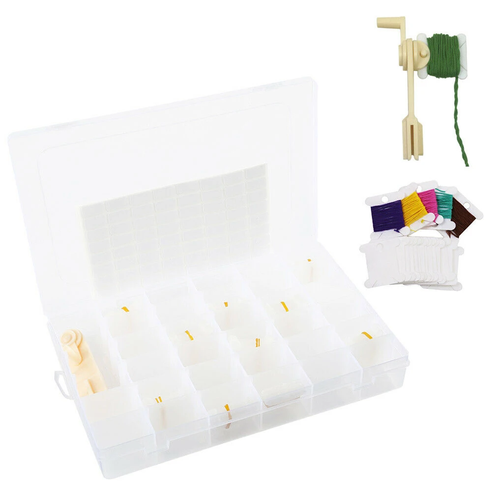* Размер некоторых катушек совместим с сеткой коробки, нить для вышивки крестиком можно наматывать вокруг катушки, и каждая катушка имеет 2 слота для фиксации концов ниток