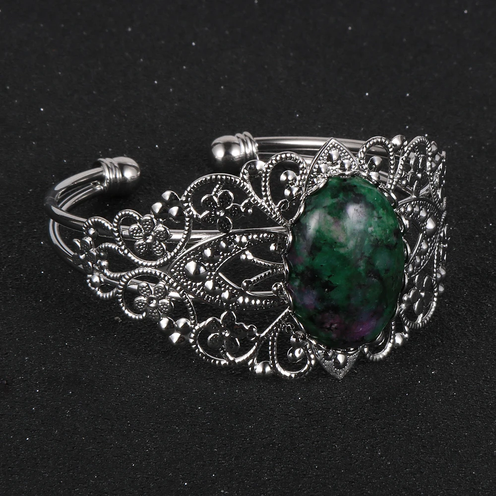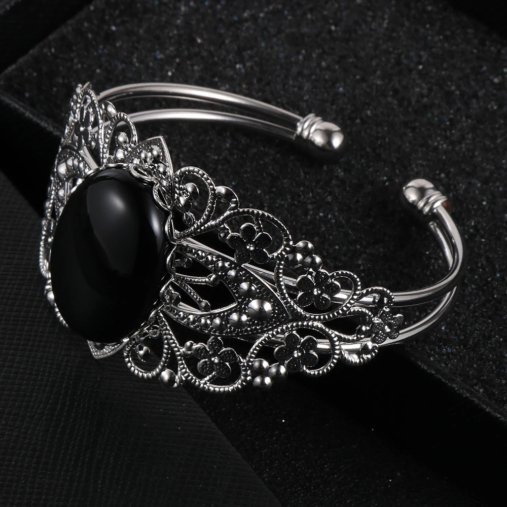 Артикул:Женские натуральный кофе оникс Лабрадорит овальная форма драгоценного камня браслет Lapis Lazuli Шарм полый цветок Браслет-манжета браслет ювелирные изделия