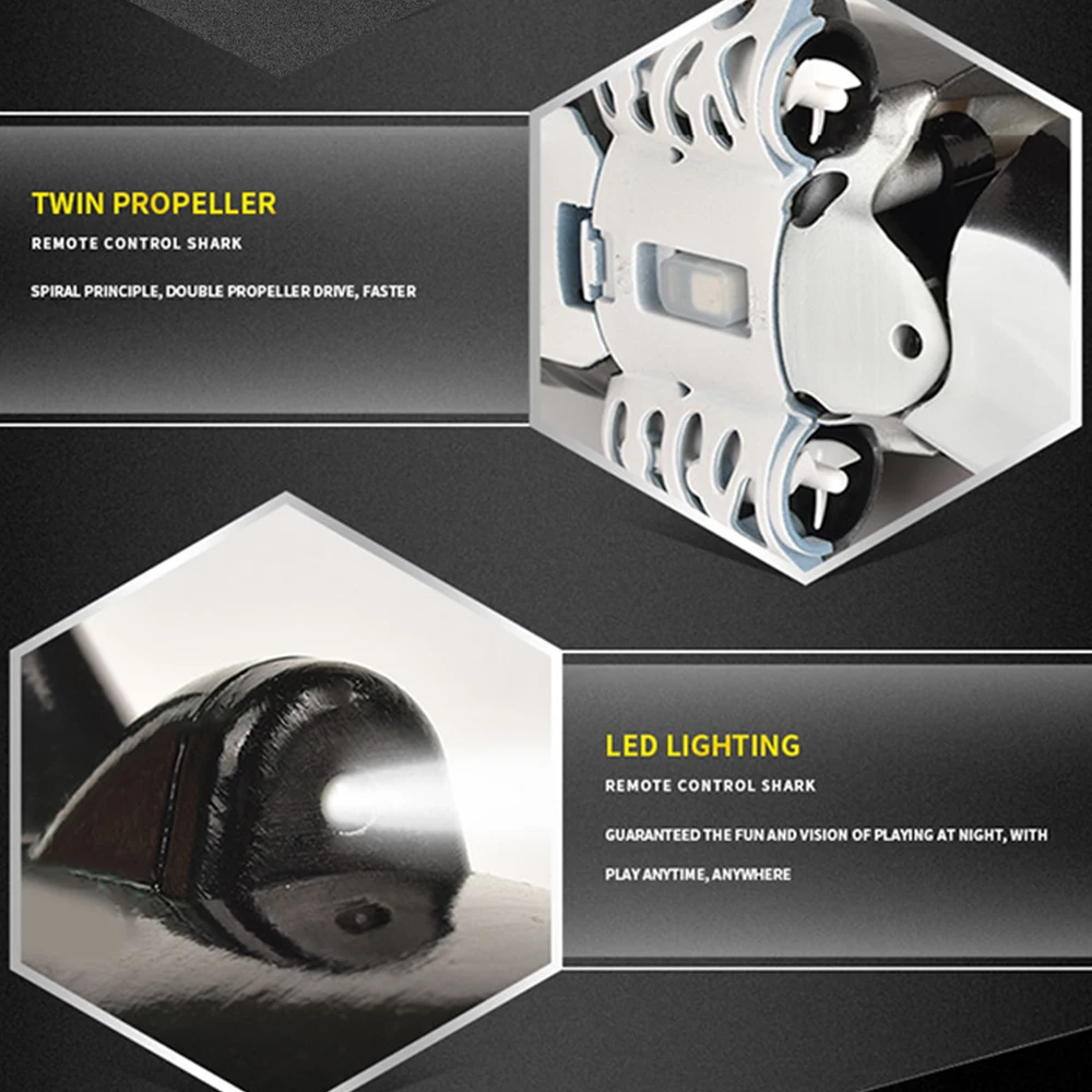 Разработанный с гладкой круглой кромкой, чтобы уменьшить водонепроницаемость, Гибкий Хвост, чтобы контролировать направление, шнек для придания мощной движущей силы, игрушка в форме акулы обладает сильной способностью плавать.