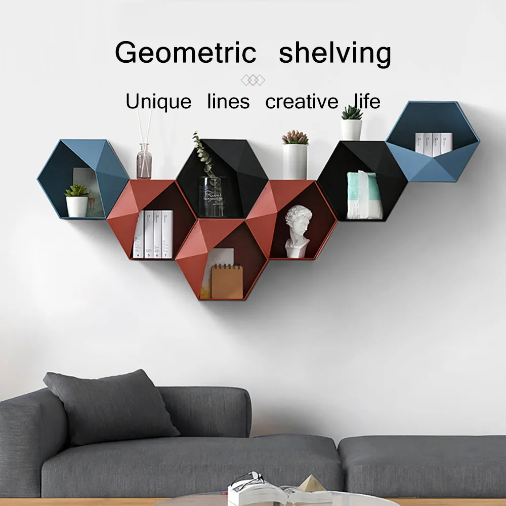 Настенная Геометрическая полка широко подходит для гостиной, спальни, ванной комнаты и т. д.