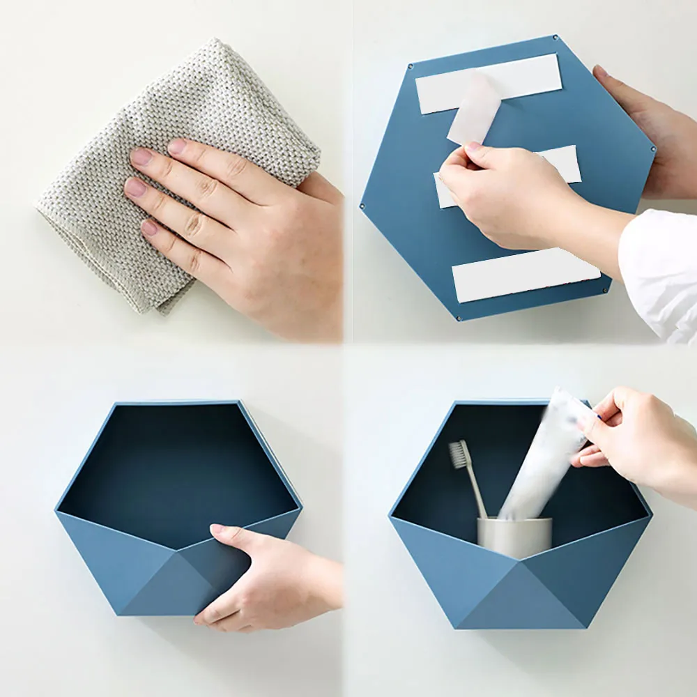 Настенная Геометрическая полка с тремя наклейками на спине, обладает хорошей несущей способностью, обладает хорошей функцией хранения.