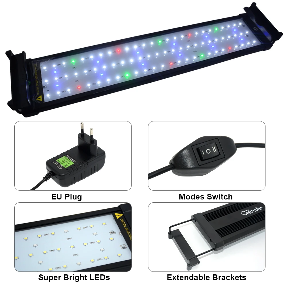 Светильник является одновременно энергосберегающим и экологически чистым. С его держателем лампы вы сможете крепко повесить лампу поверх каждого аквариума. А с регулируемой длиной Идеально подходит для любой декоративной ситуации.