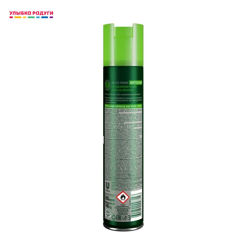 Лак для волос «Чистая Линия Объем от корней» укрепляет и защищает волосы, придавая объем от самых корней. Лак обеспечивает идеальную фиксацию на весь день, не утяжеляя волосы.