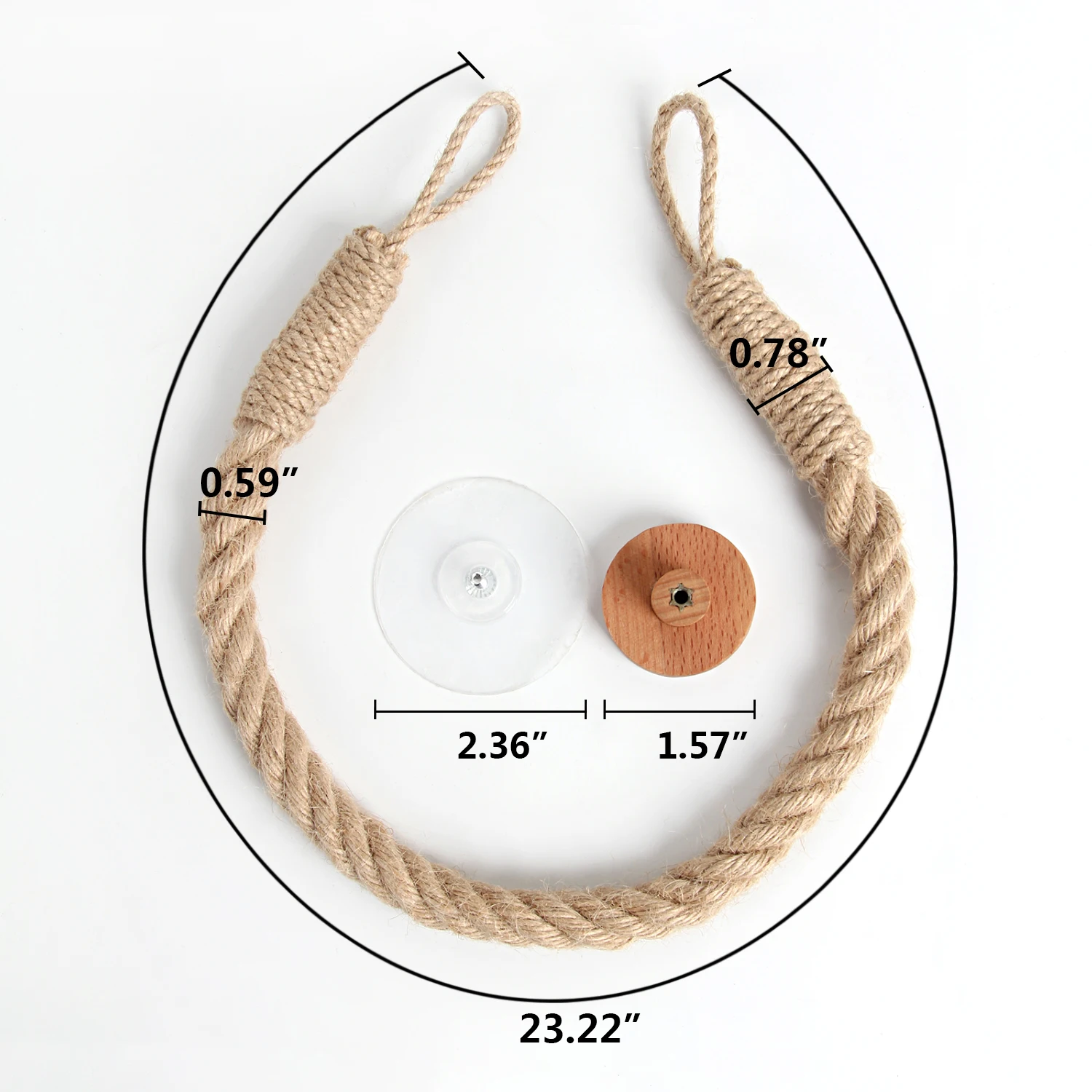 Материал:Веревки из натурального джута с клейким крючком, который не будет ржаветь. Он используется для длительного времени. Обратите внимание, что веревка является гибкой и изменит свою форму на основе веса рулона бумаги или полотенца.