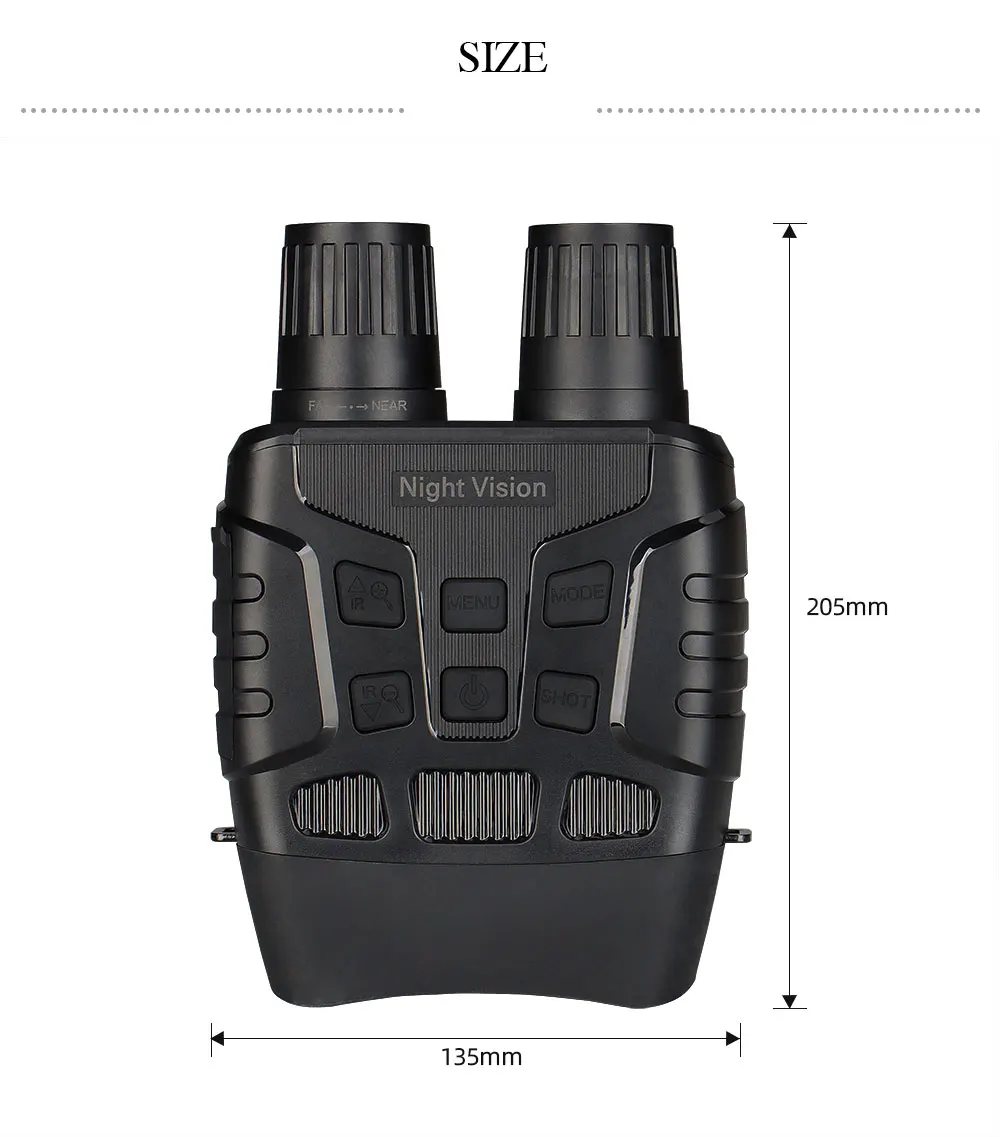 Размер неподвижного изображения: 1 м (1920X960) / 960VGA(640X480) Размер видео: 720P(1280x720 @ 30 кадров в секунду) / VGA(640x480 @ 30 кадров в секунду) Диафрагма: F 1,2 f = 25 мм Угол Линзы: FOV = 10 °, диаметр 24 мм Экран дисплея: внутренний экран 2,31 дюйма (960*240)TFT; Экран 98*48 мм Цифровой зум: 4X Память: TF карта, до 32 г (не входит в комплект) Дальность обзора в полной темноте: 200-300 м Мощность: 9 В, 6 батарей AA (не входят в комплект)