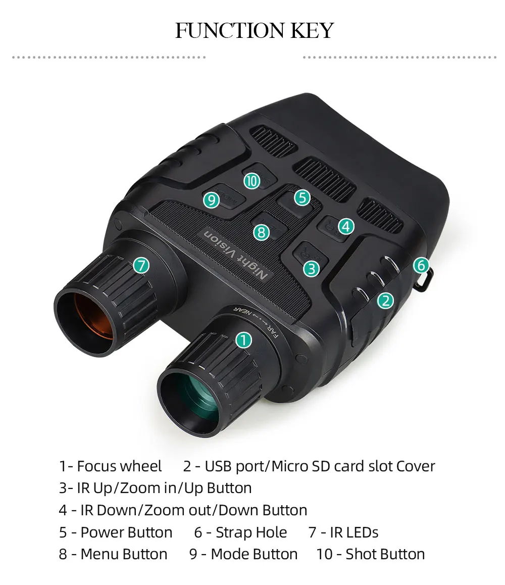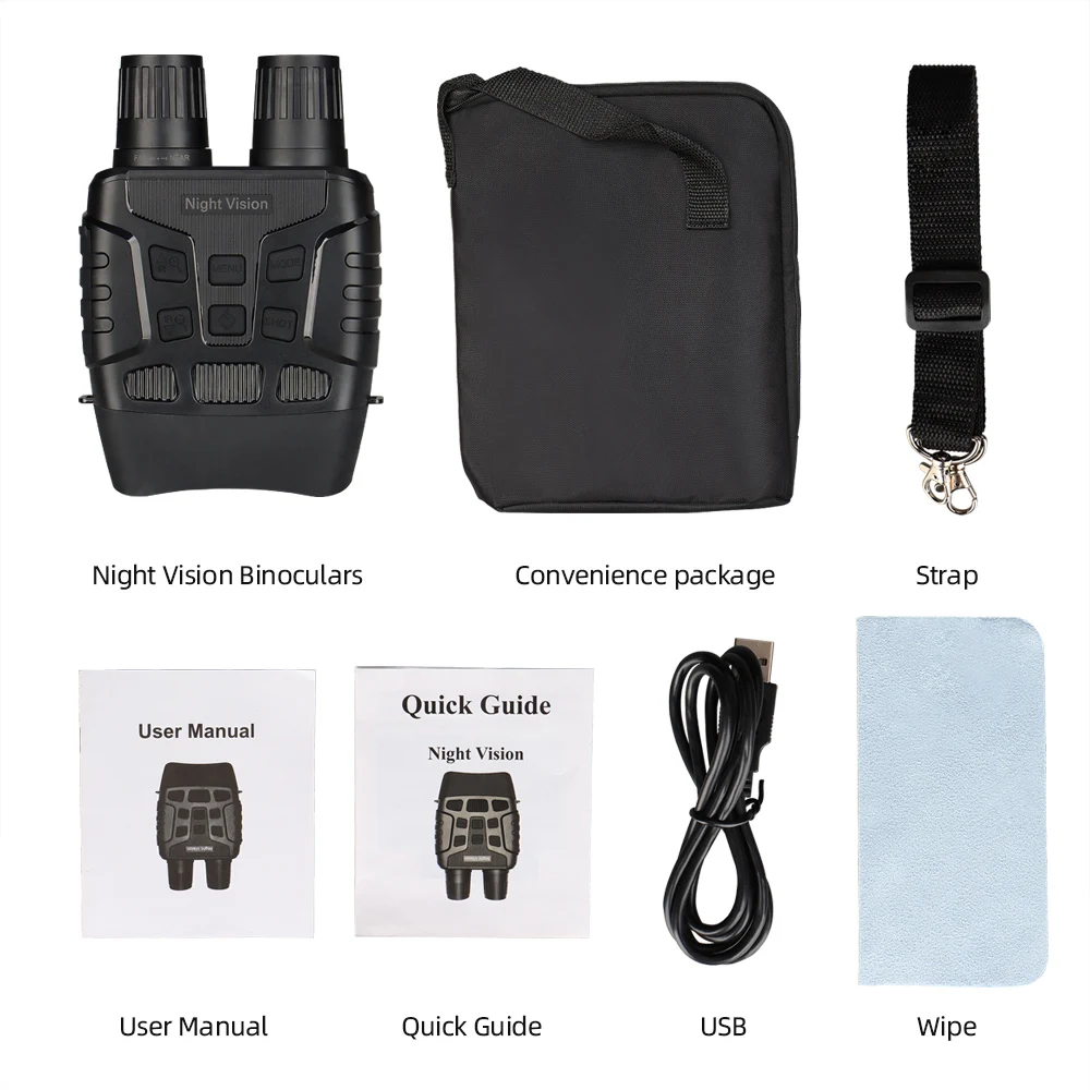1 * Бинокль ночного видения 1 * плечевой ремень 1 * USB кабель 1 * Инструкция, которые мы получаем от производителя 1 * сумка для переноски
