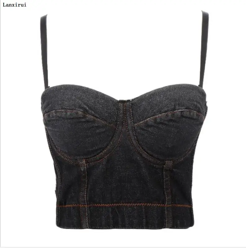 Отзывы о Сексуальный женский Джинсовый укороченный топ на бретелях-спагетти с открытой