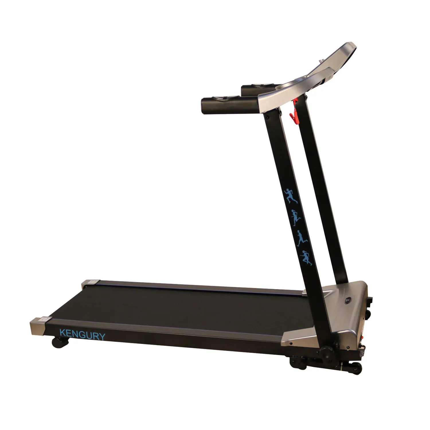 Представляем новую компактную беговую дорожку DFC Kengury. Дорожка предназначена для индивидуальных тренировок в домашних условиях. На выбор 2 цветовых решения. На стойках тренажера присутствует изображение бегущих людей.На дорожке установлен двигатель постоянного тока мощностью 1.25 л.с., при пиковых нагрузках мощность достигает 2.0 л.с. Рабочая поверхность бегового полотна имеет размер 110 х 40 см, что является отличным параметром в данной ценовой категории.