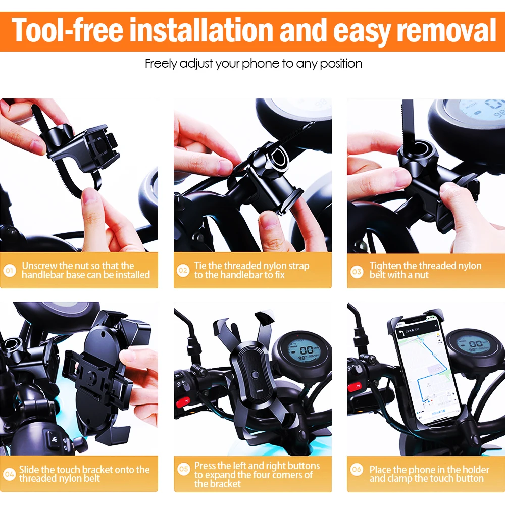 3. Подходит для горных велосипедов, мотоциклетные ручки, подходит для мобильных телефонов, iPhone, 11 X/XR/XS MAX, Samsung и большинство 4-6,8 дюймовых смартфонов