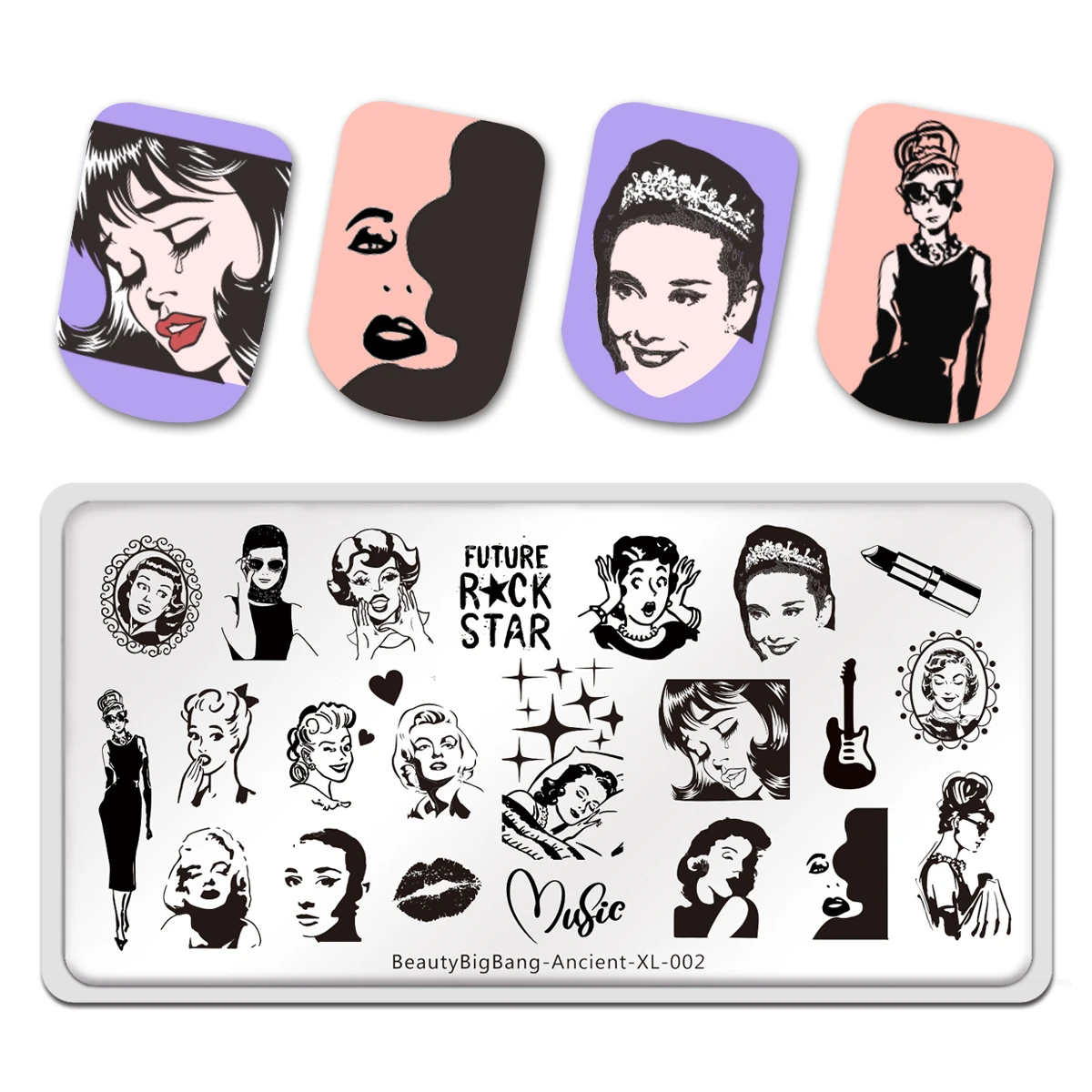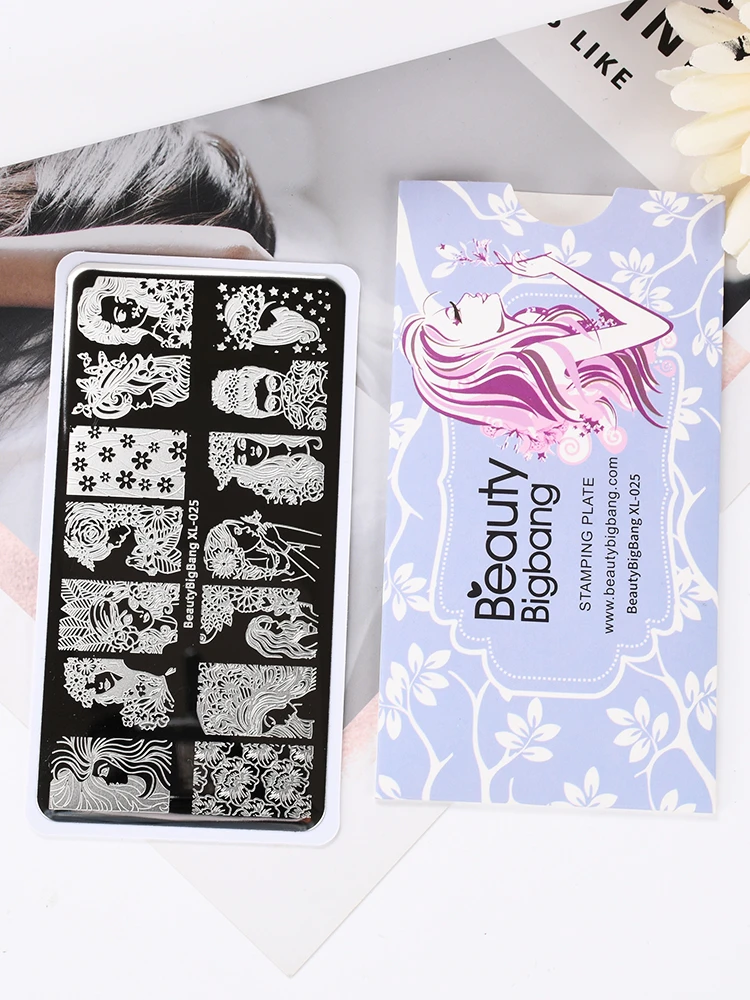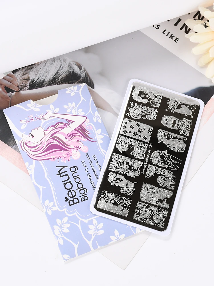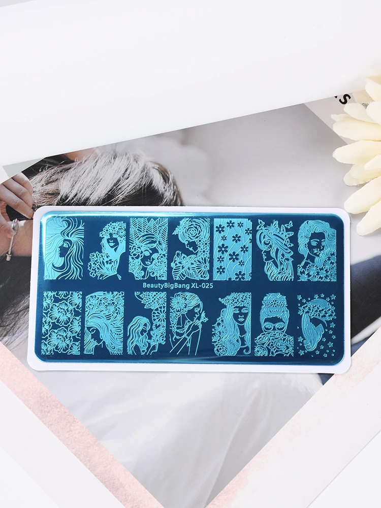 Красота BigBang ногтей штамповки пластины красота девушка цветок женщины изображение персонажа из нержавеющей стали дизайн ногтей Шаблон трафарет XL-025